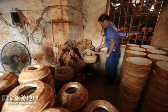 國(guó)家旅游地理 廣西河池8月6日訊 8月4日,顏福友師傅在廣西宜州市郊區(qū)他的制陶作坊里給陶器上釉。在廣西宜州市郊區(qū),65歲的顏福友師傅經(jīng)營(yíng)著他的傳統(tǒng)制陶作坊,作坊里除了顏師傅,還有他的老伴和兩名幫工。顏師傅14歲開(kāi)始當(dāng)學(xué)徒制作陶器,如今掌握著許多手工制陶的獨(dú)門(mén)絕技,在作坊里,幫工只負(fù)責(zé)干體力活,制陶的關(guān)鍵部分都是顏師傅親手完成的。由于顏師傅制作出的陶器質(zhì)量好,許多花卉盆景、釀酒、食品等工廠單位向他訂做陶器產(chǎn)品。但是由于手工制陶辛苦單調(diào),效率低下利潤(rùn)不高,顏師傅的手藝面臨著斷代失傳的危險(xiǎn)。 /新華社發(fā)(覃剛 攝)