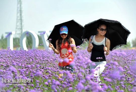 8月21日,游客正在寧夏中衛(wèi)市金沙島旅游景點(diǎn)觀賞薰衣草,該島坐落在騰格里沙漠邊緣。