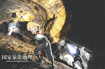 摘要: 這次發(fā)現(xiàn)的天然溶洞由前洞、后洞組成。前洞有水、旱兩洞,水洞在洞口處,十分狹小僅能由一人通過(guò),斜向下5米處被亂石堆滿(mǎn)洞口,沿著亂石成堆的石頭,跨過(guò)一個(gè)巨大的鐘乳石,斜向上約3米有一洞窟約200米見(jiàn)方,石壁周?chē)紳M(mǎn)仙桃、石柱等形態(tài)各異的鐘乳石,頂
