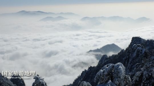 國家旅游地理 安徽黃山12月22日訊 這是12月20日在安徽黃山拍攝的云海景觀。當(dāng)日,雪后放晴的安徽黃山風(fēng)景區(qū)云海翻騰,美不勝收。 /新華社發(fā)(水從澤 攝)
