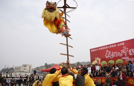 國家旅游地理 廣西來賓2月5日訊 2月4日,廣西象州縣的農(nóng)民舞獅隊在參加獅王爭霸賽。春節(jié)期間,廣西壯族自治區(qū)來賓市象州縣舉行獅王爭霸賽,來自該縣的32支農(nóng)民舞獅隊一展技藝、爭奪獅王,為當?shù)厝罕姭I上一場精彩的民俗文化大餐。 /新華社發(fā)(龔堅 攝)