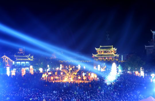 2月14日,鳳凰古鎮(zhèn)文化廣場人山人海。