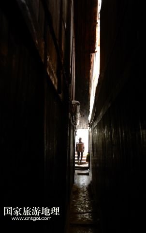 3月27日,一位村民穿過慶陽古街悠長的巷口。
