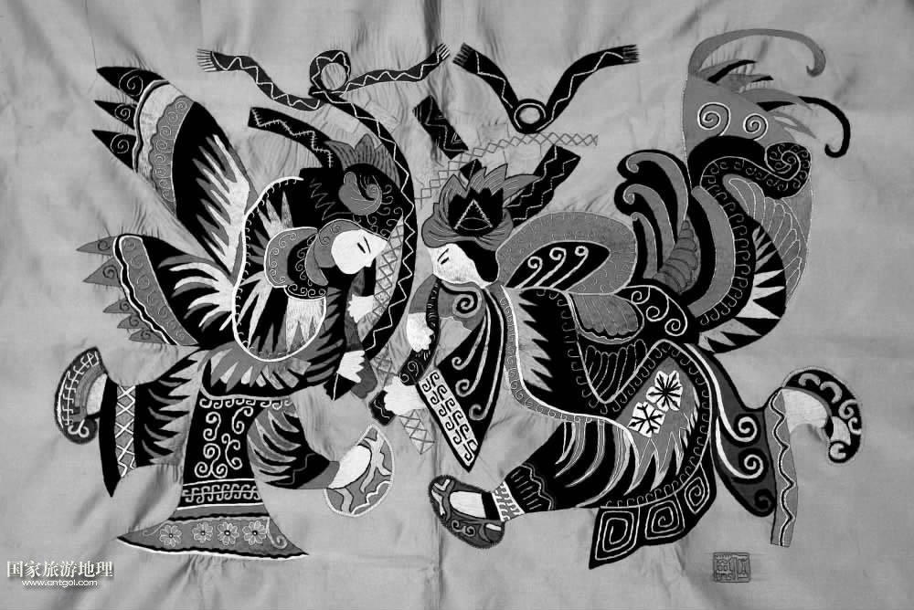 苗族沒有文字 ,只有語言 ,但他們將信仰圖騰和歷史傳說都融在了繁復的圖案中間。自古以來 ,苗繡作為苗族文化傳承的載體 ,兼有文字和圖像的功能。由于苗族人至今沒有形成可通讀的文字 ,苗家人文化歷史的傳承 ,主要依靠口口相傳的口頭文學以及他們的衣裝和衣裝上的刺繡。