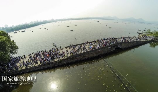 國(guó)家旅游地理 浙江杭州5月1日訊 5月1日,杭州西湖景區(qū)里的游客熙熙攘攘。當(dāng)日是五一小長(zhǎng)假的第一天,杭州西湖景區(qū)從上午開始就進(jìn)入了游客“高峰模式”。根據(jù)杭州旅游委員會(huì)的數(shù)據(jù),2013年五一小長(zhǎng)假期間,杭州西湖景區(qū)累計(jì)接待游客168.48萬人次,今年很有可能會(huì)突破這個(gè)數(shù)字。 /新華社記者 徐昱 攝