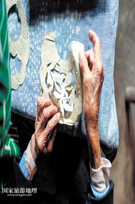 ↑剪紙模是拼布繡的第一個步驟,手藝人需要格外細(xì)心,才能剪得恰到好處。