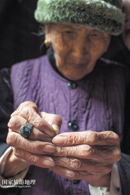 →雖已是84歲高齡,但即便拿著最細(xì)的繡花針,廖西鳳也能輕松引線。