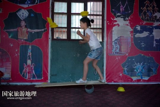 國家旅游地理 安徽阜陽5月31日訊 安徽省潁上縣三王村鄉(xiāng)村雜技學校成立于2007年。每年都有百余名農村孩子來到這里學習雜技。