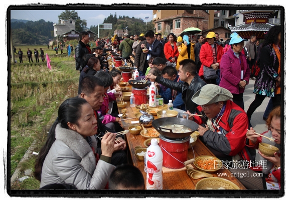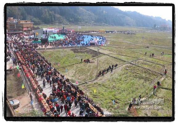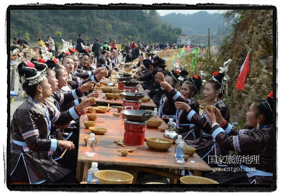今年黎平侗年節(jié),除了延續(xù)亙古以來(lái)老百姓過(guò)侗年的各項(xiàng)傳統(tǒng)習(xí)俗活動(dòng)外,還有“天下侗家年”大型侗族史詩(shī)情景歌舞展演、侗族萬(wàn)人長(zhǎng)桌宴、招商引資推介會(huì)、七彩田園采摘體驗(yàn)、百村集市商品展銷(xiāo)、侗文化研討會(huì)、楊再思文化交流研討會(huì)等多項(xiàng)主題活動(dòng),其中,主打主推的“最大合攏宴”(萬(wàn)人長(zhǎng)桌宴)品牌,得到基尼斯紀(jì)錄總部到現(xiàn)場(chǎng)認(rèn)定,以1700桌合攏宴,總長(zhǎng)3.7公里,10380人同桌就餐,創(chuàng)歷史之最,成功載入《基尼斯紀(jì)錄大全》,吸引數(shù)萬(wàn)旅游客到場(chǎng)親自見(jiàn)證、參與、感受和體驗(yàn)這一千載難逢,氣勢(shì)恢宏的盛況。